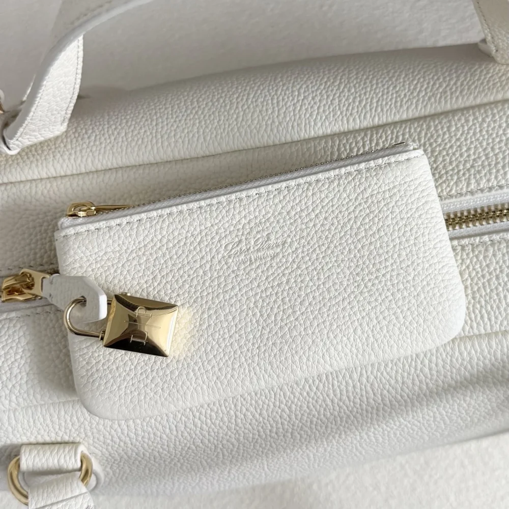 Here presented in a medium size, the Needle bag seamlessly melds style, functionality, and elegance. It is steeped in the Maison’s textile heritage and has an incredible sensoriality akin to Loro Piana’s exquisite fabrics. Crafted from supple, fine-grained leather, its silhouette is accented with signature charms, including a padlock with a gemstone in a Baby Cashmere hue. It is ideally suited for versatile wear over the shoulder or in hand.