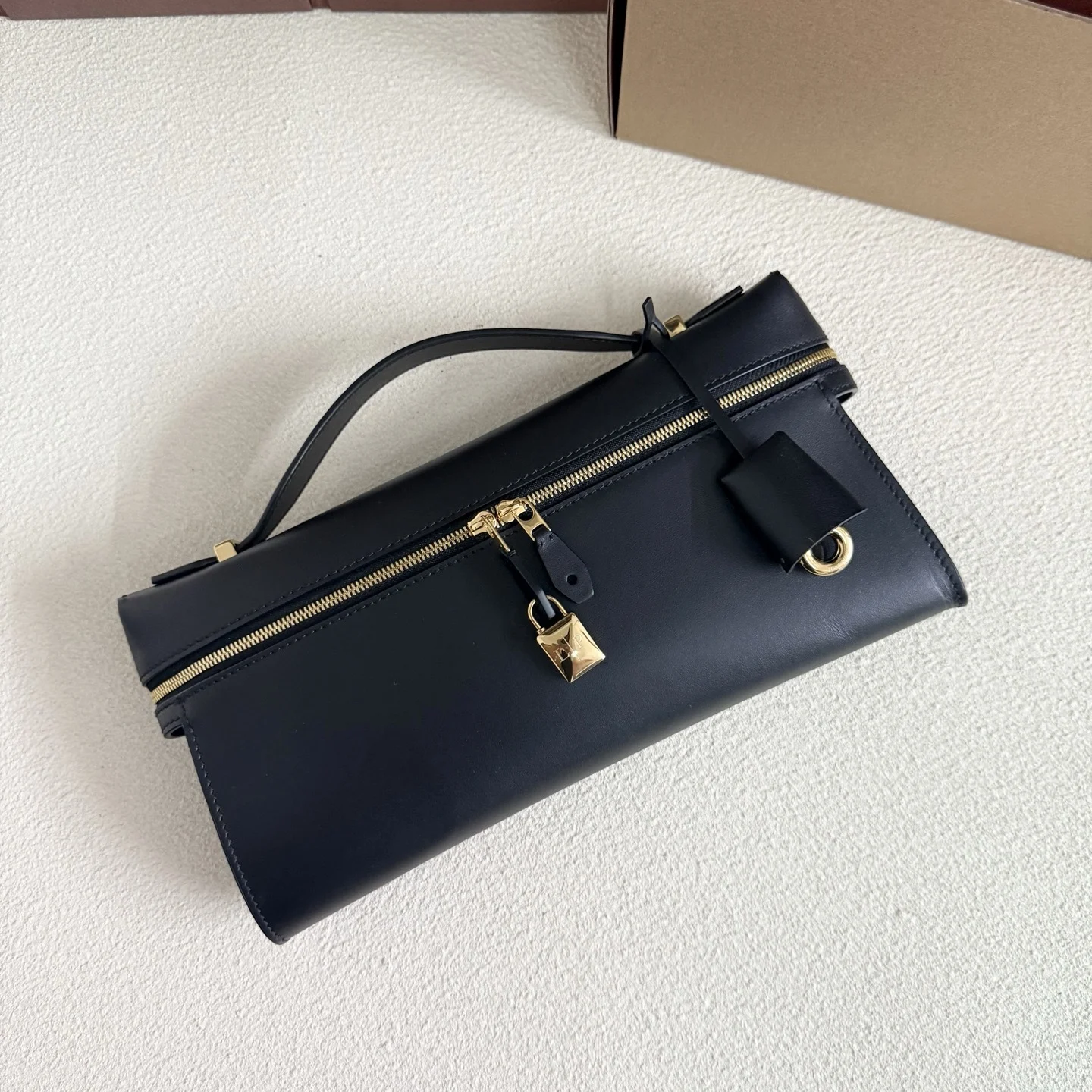 An elegant accessory with compact proportions, the Extra clutch L29 is primed for special occasions and everyday elegance alike. It is rendered in Saddle Leather with a smooth, full-bodied touch and signature topstitching. Suspended from the double-zip close are Loro Piana’s iconic charms, framed by a refined leather key holder.