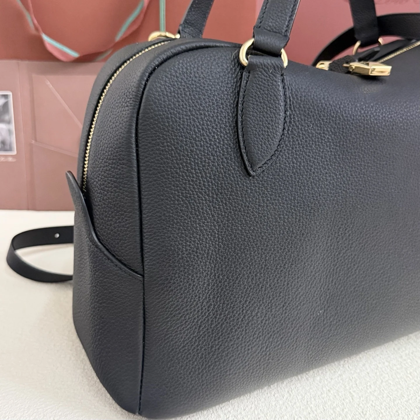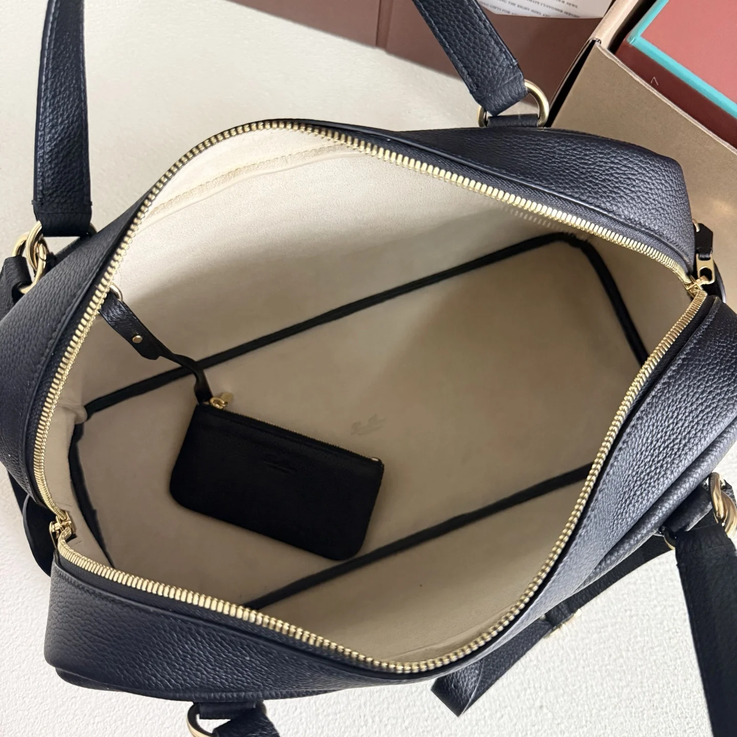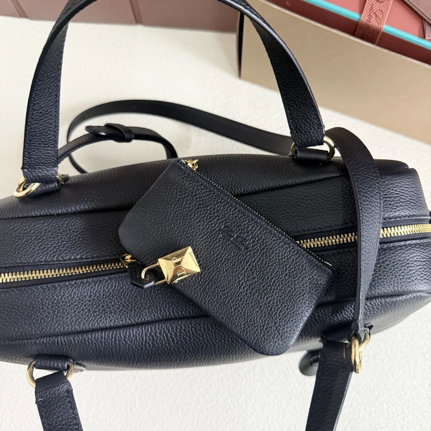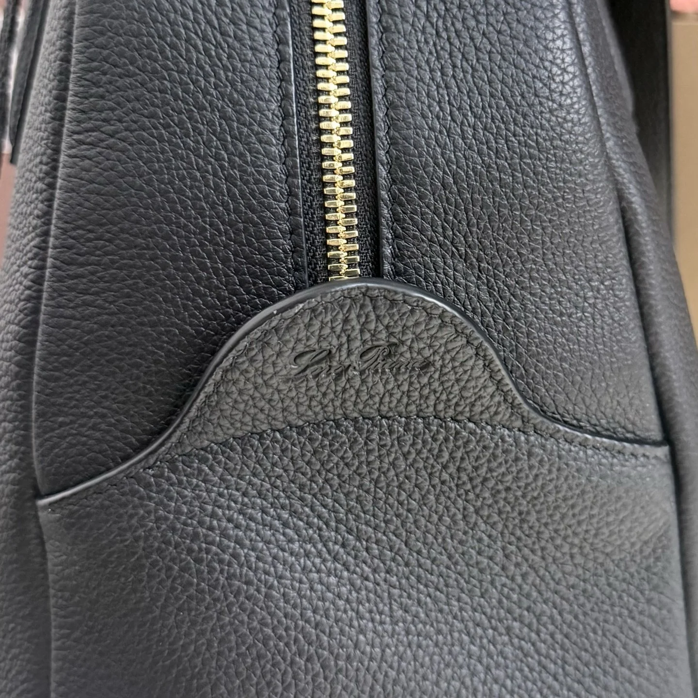 Here presented in a medium size, the Needle is a Loro Piana interpretation of the bowling bag, complete with the iconic LP charms. Evoking the Maison’s textile heritage, it is inspired by the bags used to carry knitting needles. It is constructed with soft, sinuous lines, allowing for versatile wear over the shoulder or in hand. Crafted from incredibly fine calfskin with a velvety suede lining, it has a harmonious silhouette and is made with a single piece of leather along the sides.