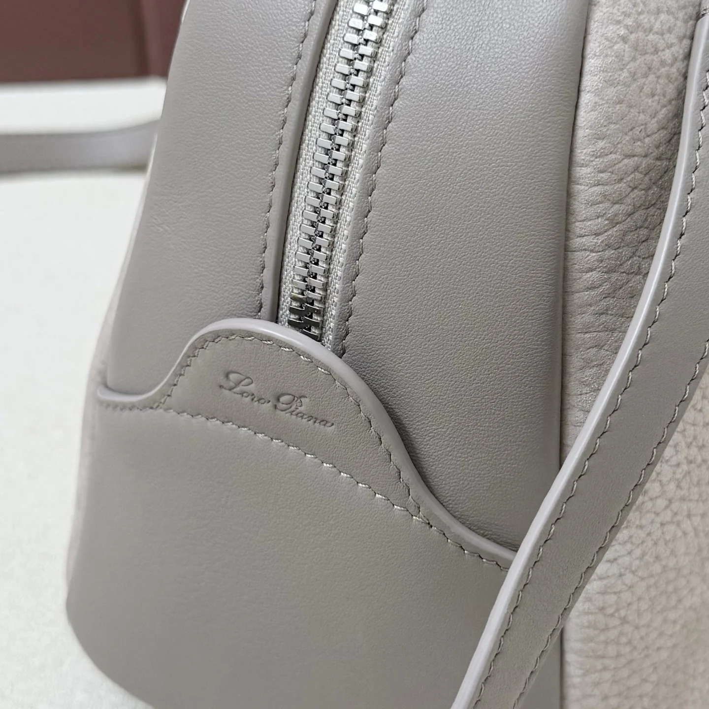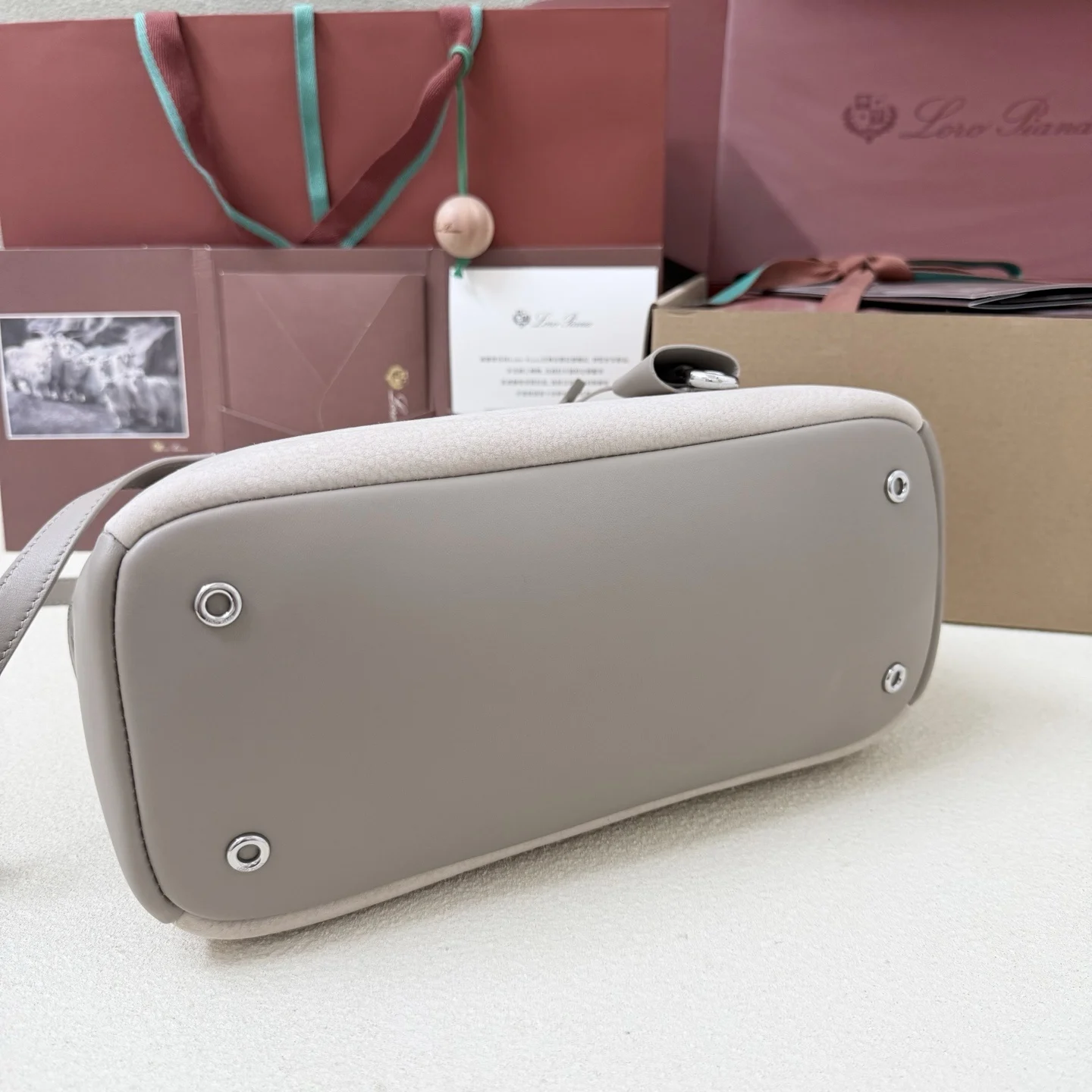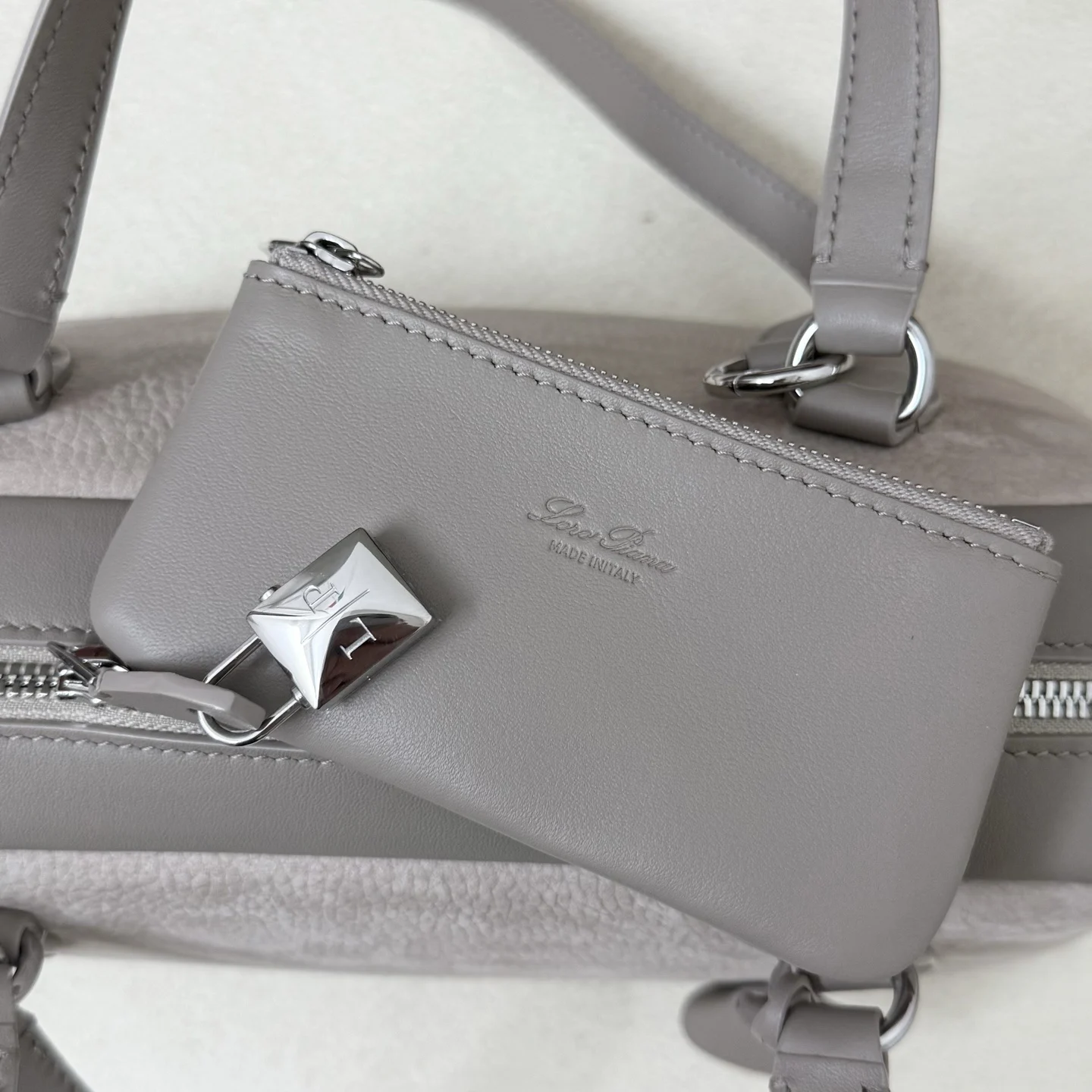 An elegant accessory with compact proportions, the Extra Bag L23 combines timeless style with functionality. Primed for special occasions and everyday elegance alike, it is crafted from Irish silk tweed with Rounded Leather accents. Suspended from the double-zip closure are Loro Piana’s iconic charms, framed by a leather key holder featuring a Ghiera detail.
